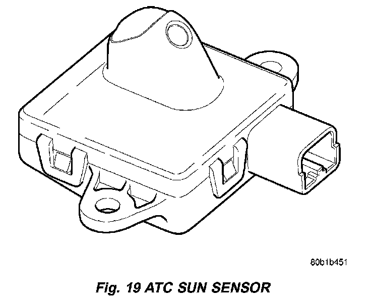 The sun sensor is only used on vehicles equipped with Automatic Temperature Control (ATC). The sensor is mounted on the top of the instrument panel below the instrument panel top cover.