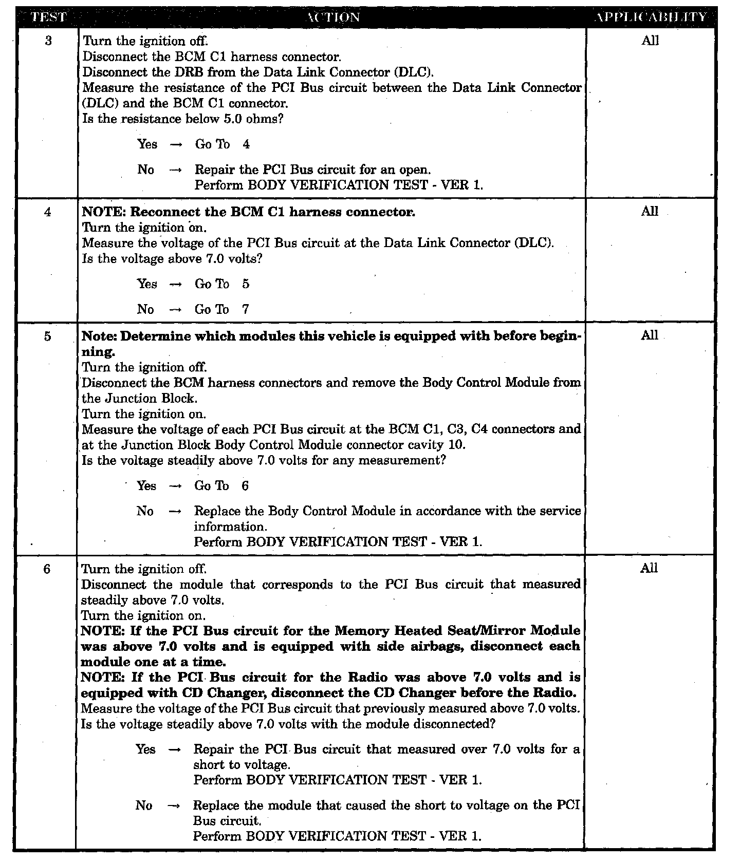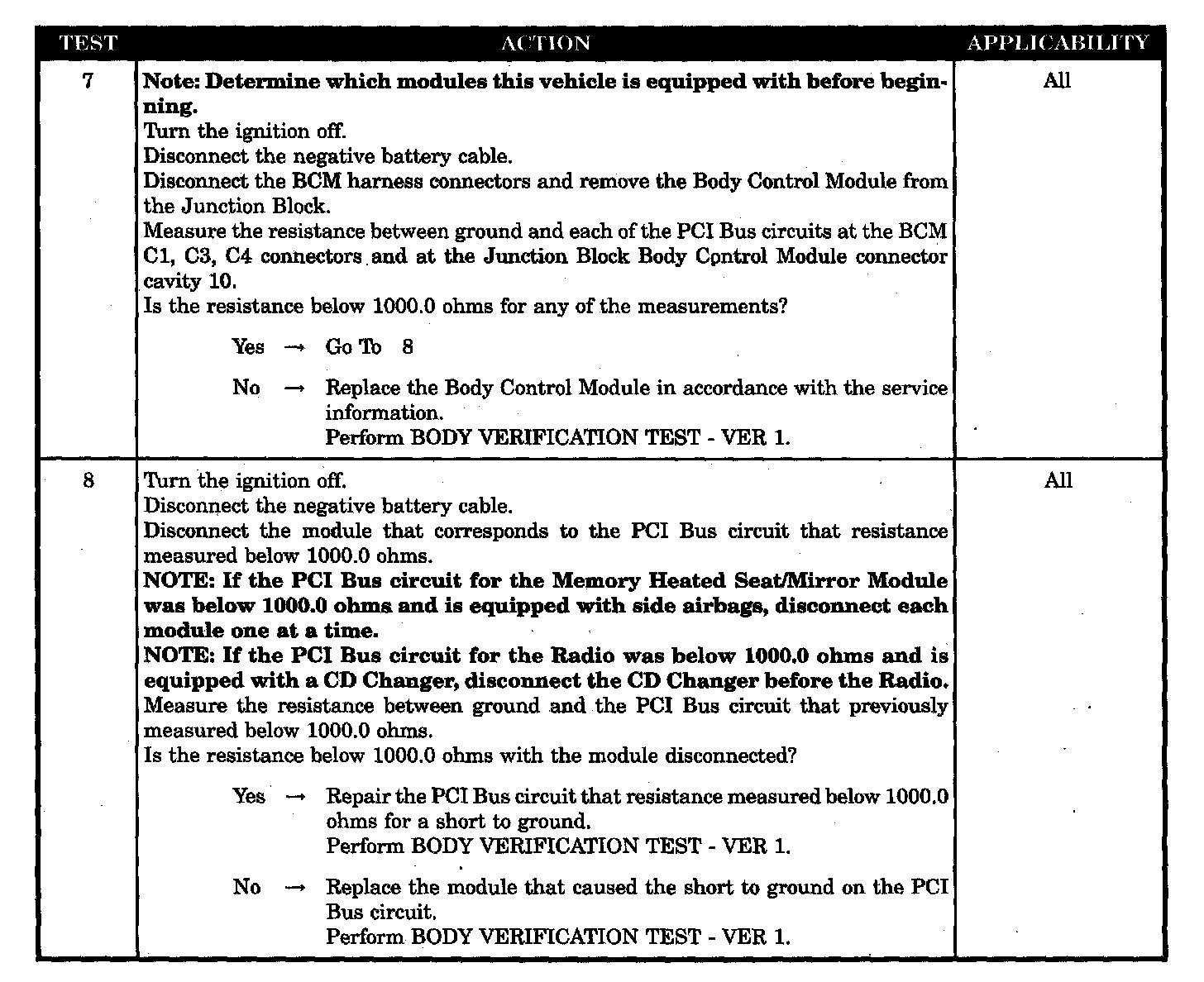 - Low resistance to ground on the PCI Bus circuits at the BCM connectors