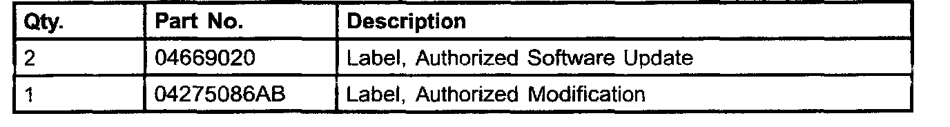 4. Type the necessary information on the "Authorized Modification Label" p/n 04275086AB and attach near the VECI label (Fig. 2).