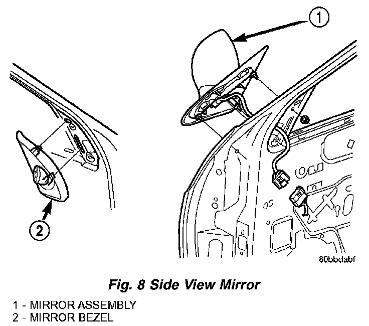 2. Remove nuts attaching mirror to door inner panel (Fig. 8).