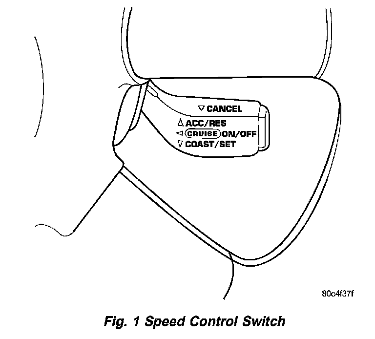 NOTE: Turning the system off by depressing the OFF switch or turning off the ignition switch will erase the set speed stored in the PCM.