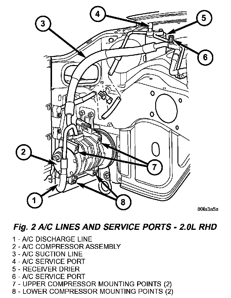 Fig.2 A/C Lines And Service Ports - 2.0L RHD:
