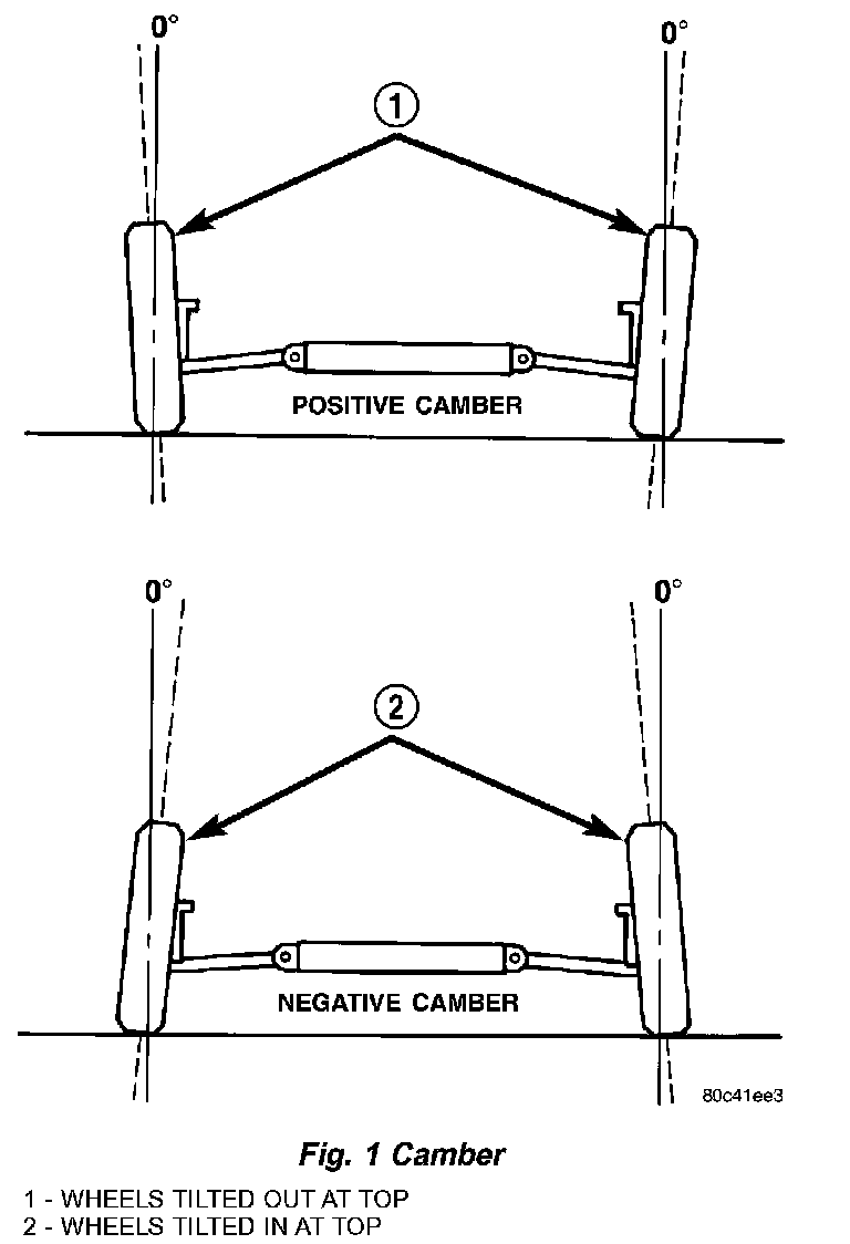 ^ Excessive positive camber will cause tread wear on the outside of the tire.