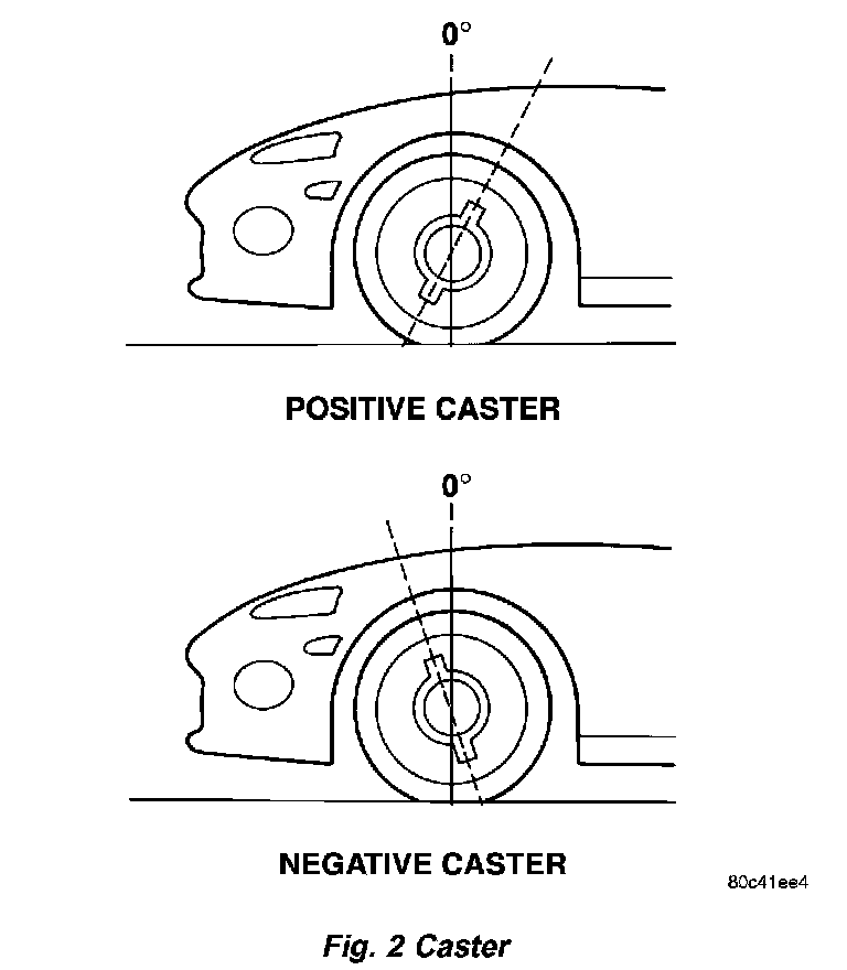 ^ Rearward tilt (upper ball joint trailing lower) results in a positive caster angle.