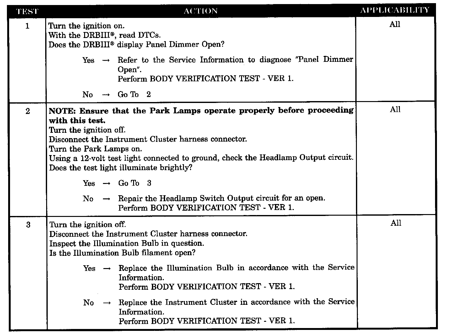 Instrument Cluster Dimming Inoperative
