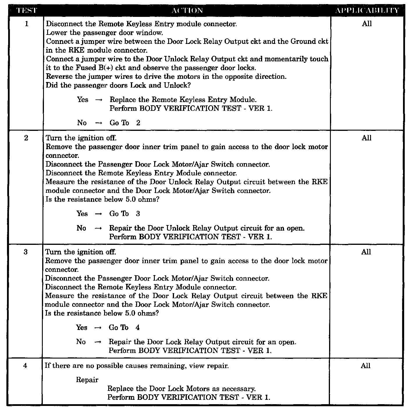 ALL DOORS EXCEPT DRIVER FAIL TO LOCK AND UNLOCK