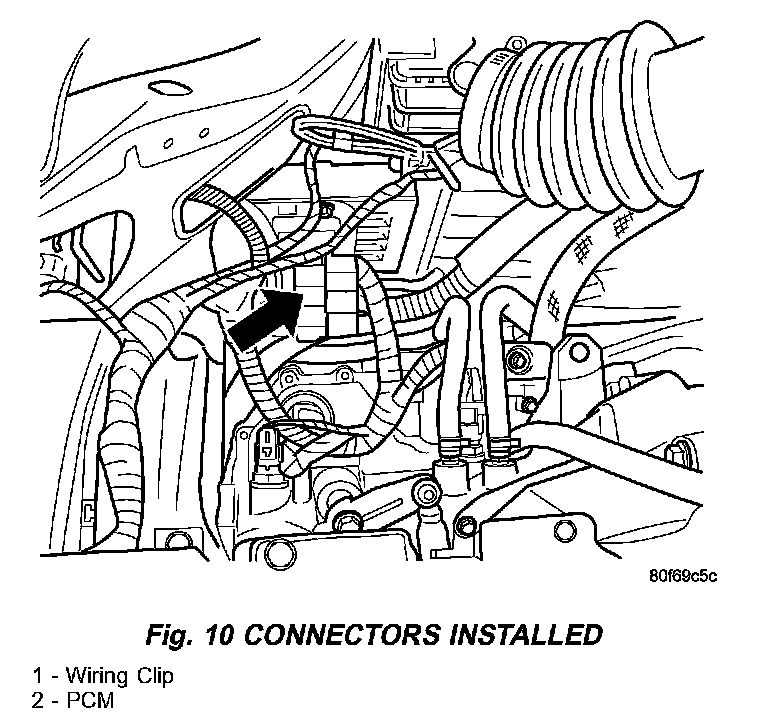 5. Install the wiring harness clip to the PCM bracket.