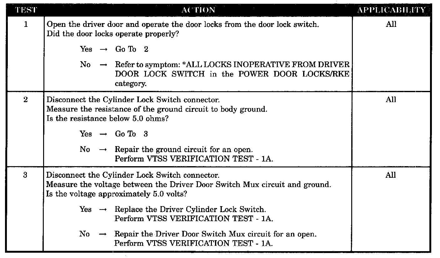 VTSS Fails to Arm From Driver Door Cylinder Lock Switch