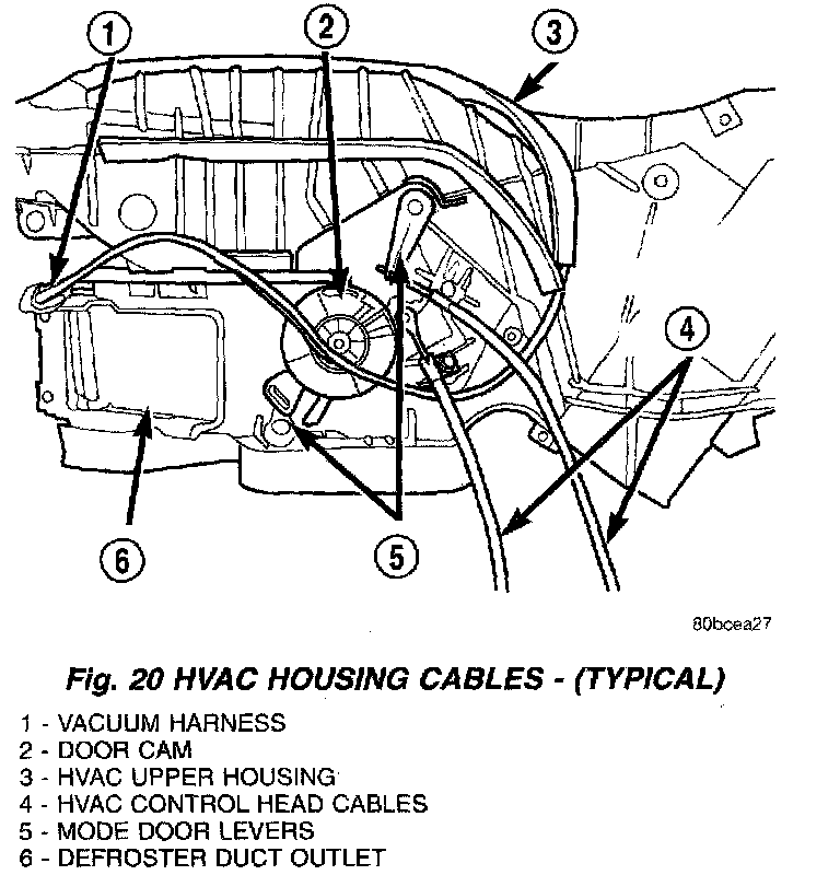 8. Remove the temperature control cable through the instrument panel heater-A/C control opening.