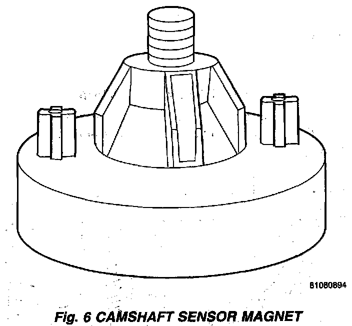 2. install target magnet in end of camshaft. Tighten mounting screw to 3.4 Nm (39 in. lbs.) torque. Over torquing could cause cracks in magnet. If magnet cracks replace it.