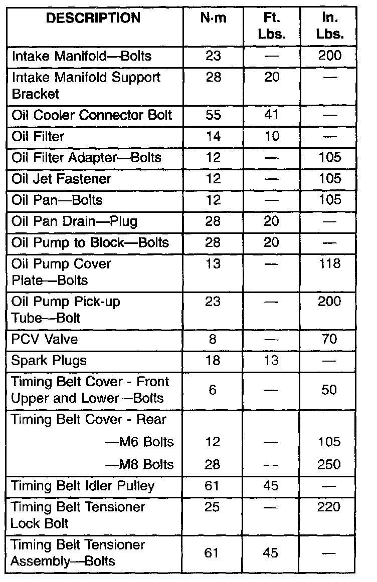 Water Pump to Engine Block Bolts 12 Nm (105 in. lbs.)