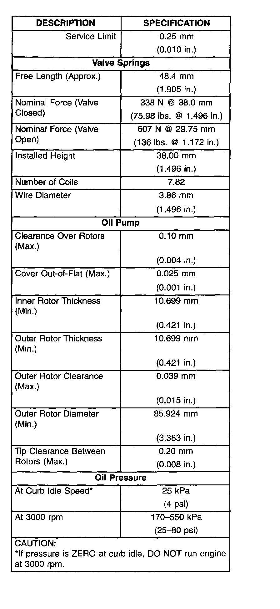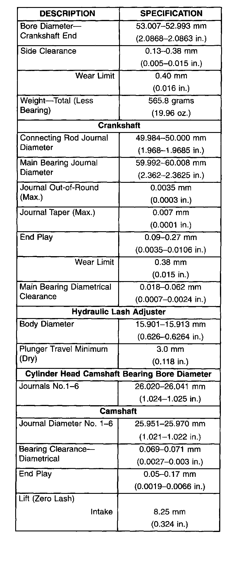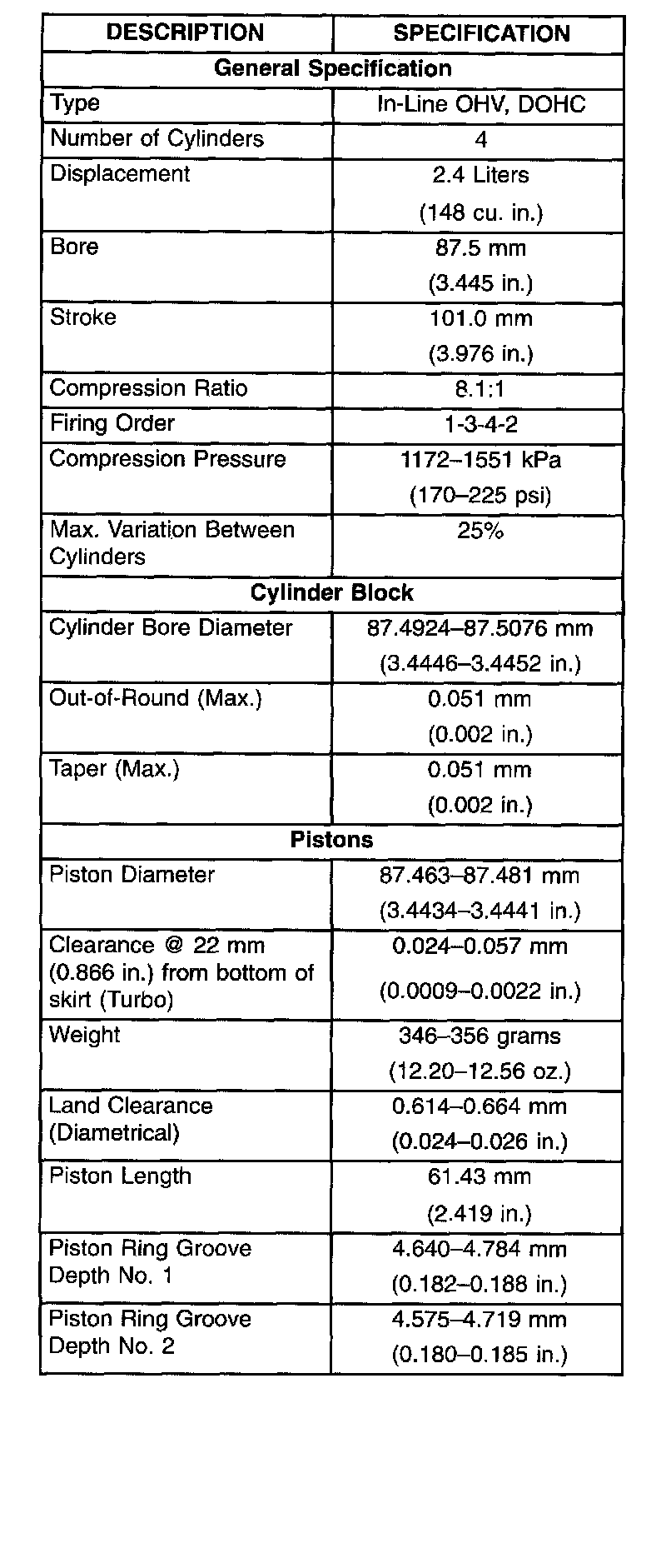 General Engine Specifications