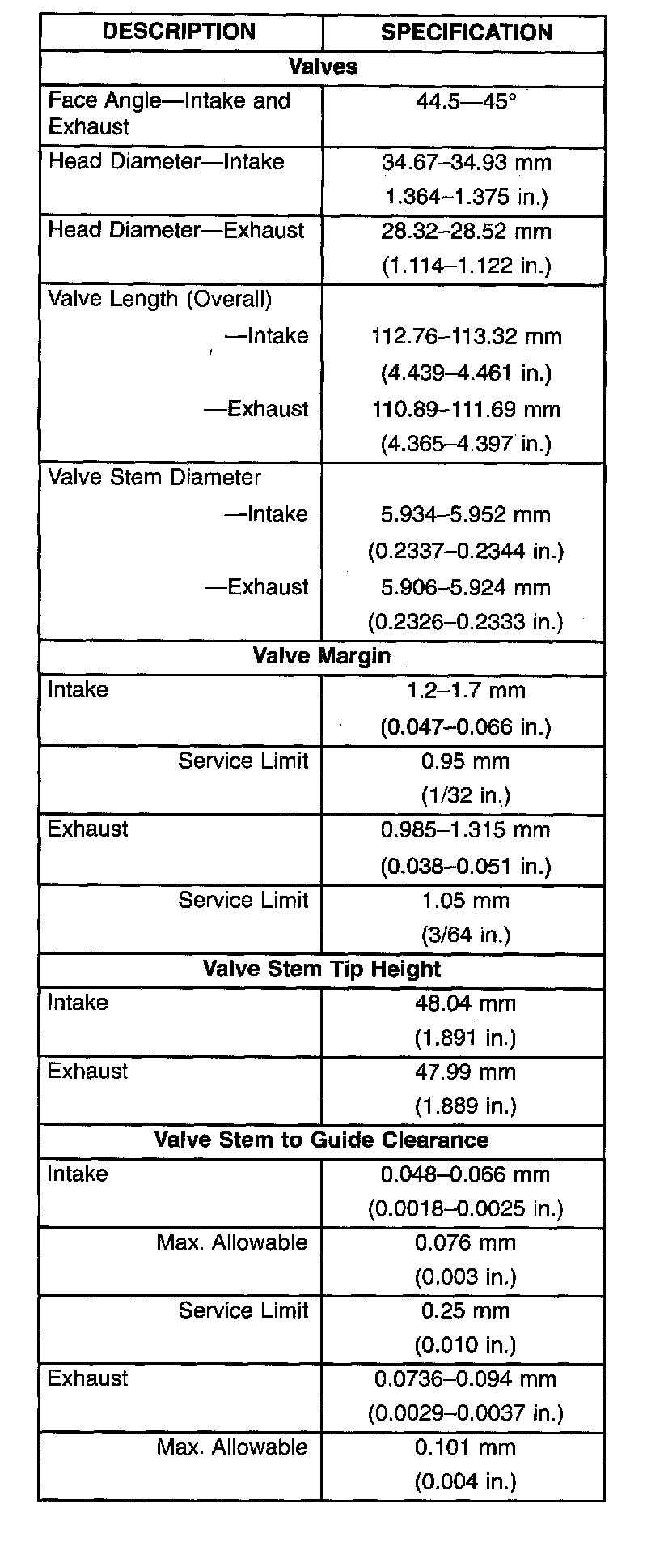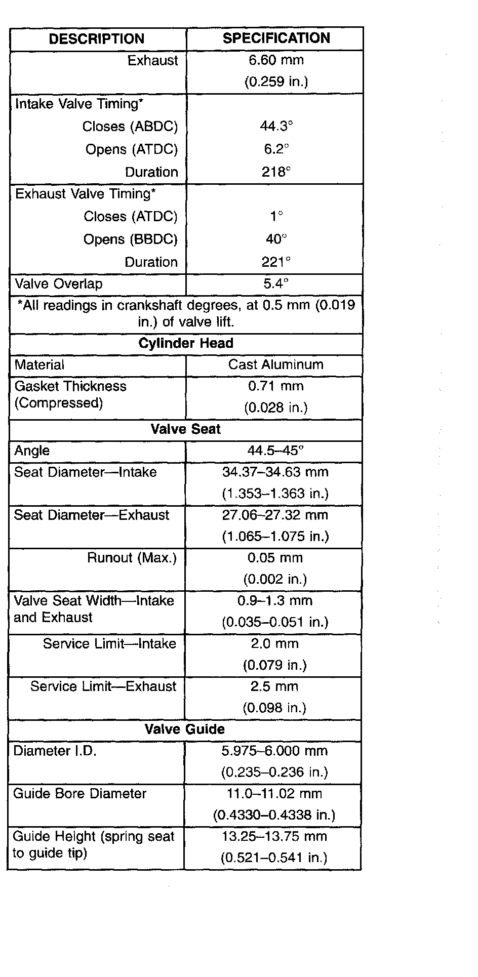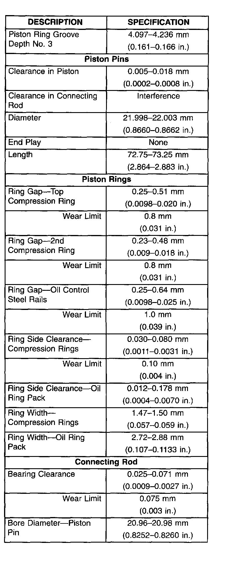 General Engine Specifications