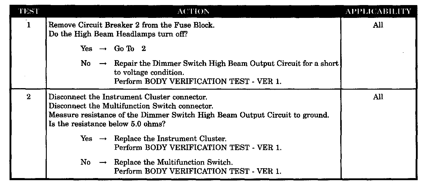 HIGH BEAM HEADLAMPS WILL NOT TURN OFF