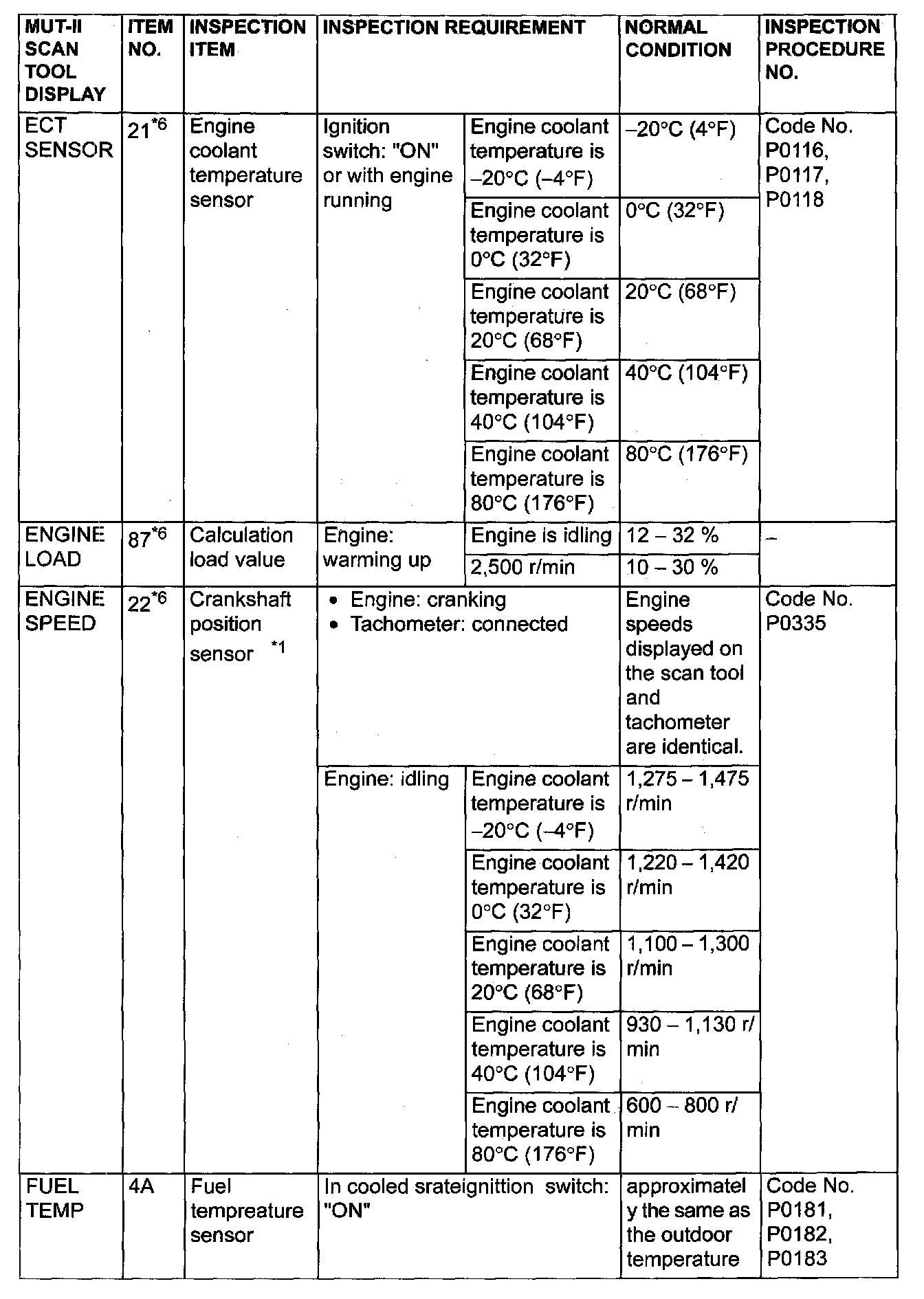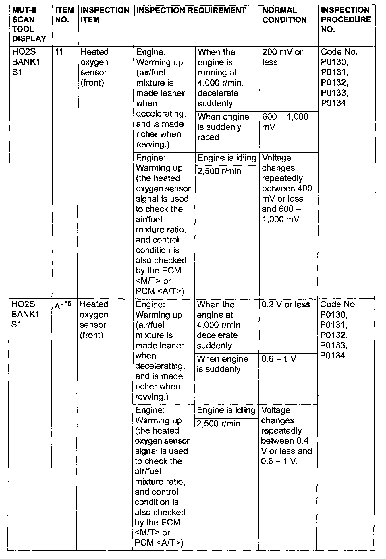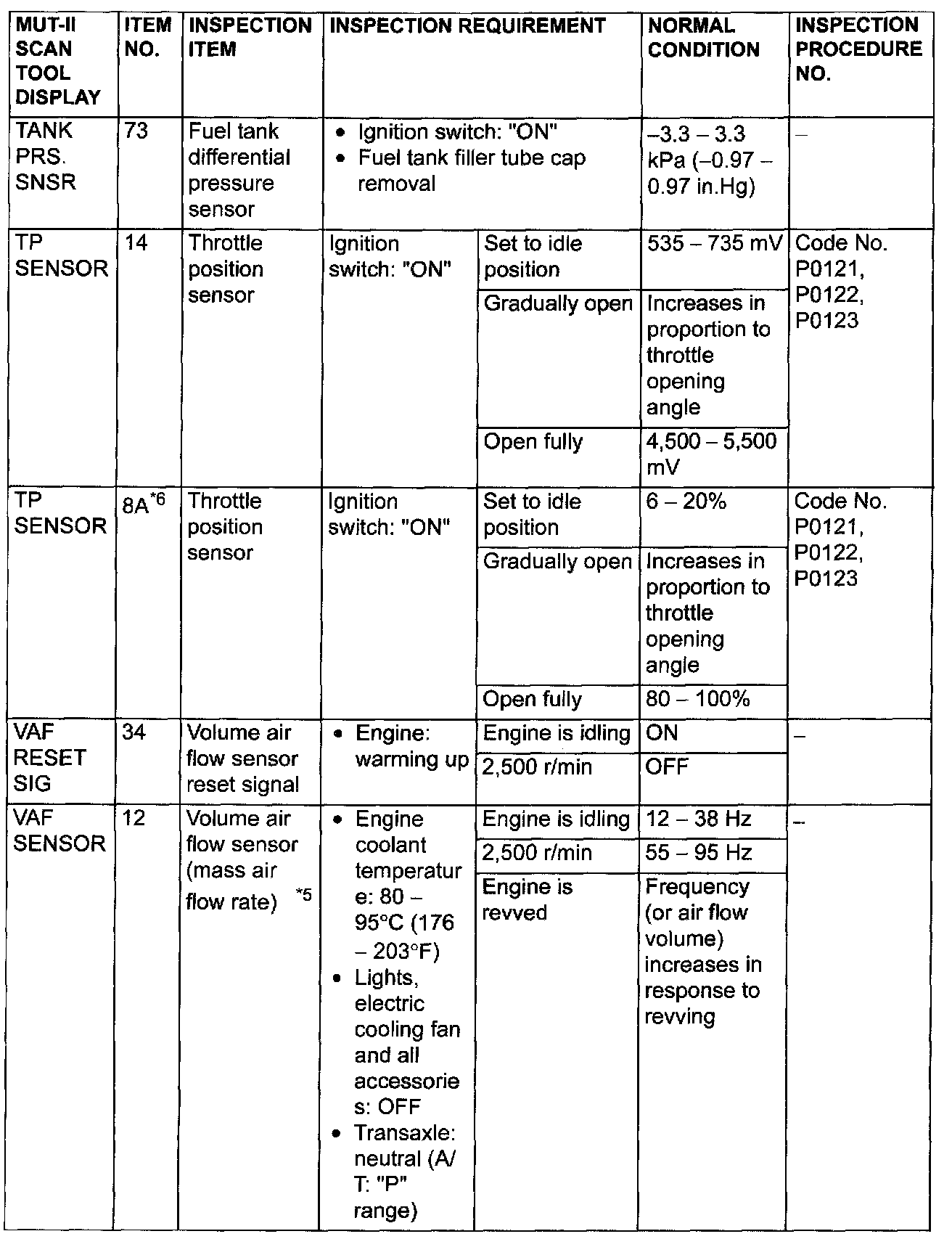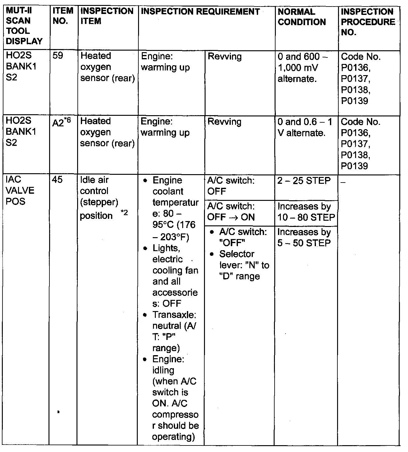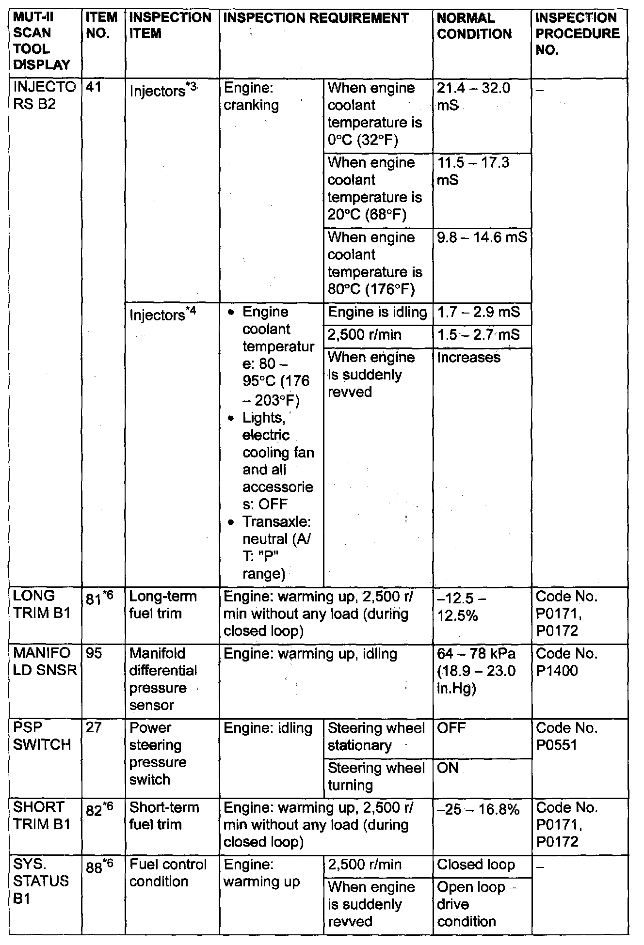 - *6: GST items. [Data list items consist of MUT-II items and GST items. GST items can be accessed through the use of a general scan tool (GST). When MUT-II (MB991502) is used, MUT-II items appear alphabetically: then, GST items appear alphabetically The black and white characters of the GST items are inverted from the MUT-II items.