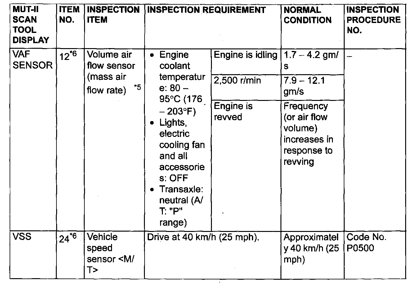 - *5: In a new vehicle [driven approximately 500 km (311 mile) or less, the volume airflow sensor output frequency is sometimes 10% higher than the standard frequency.