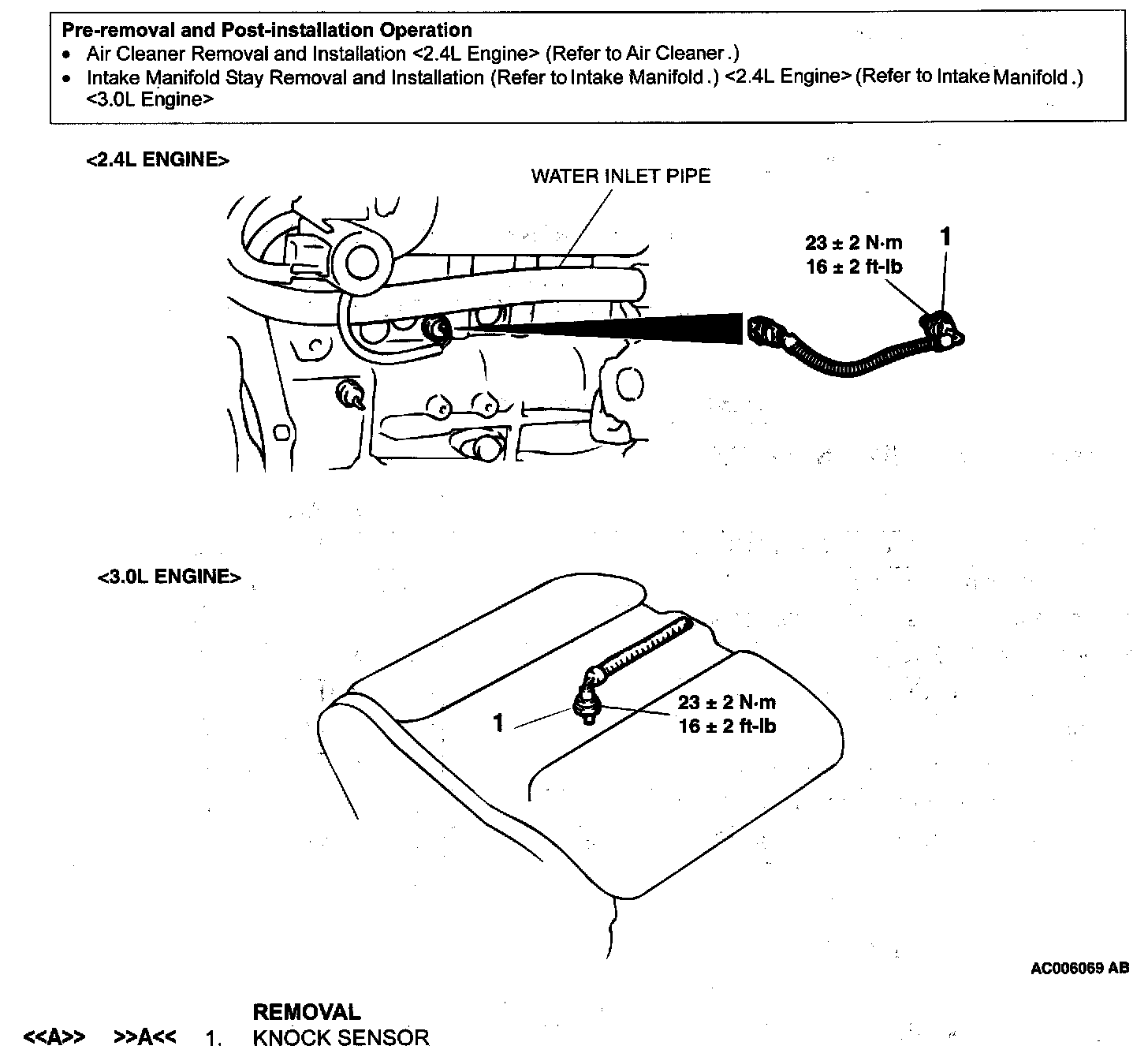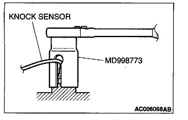 CAUTION: Do not drop or hit the knock sensor against other components. Internal damage may result, and the knock sensor will need to be replaced.Removal And Installation: