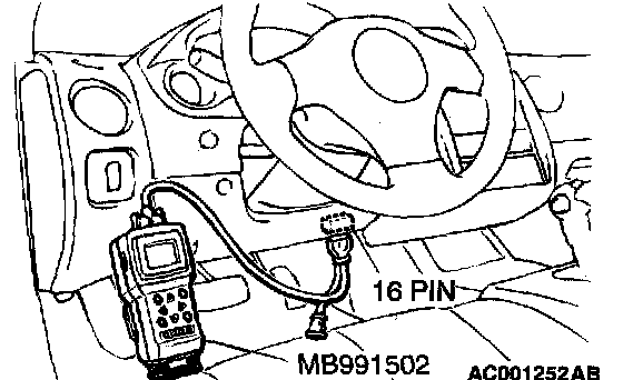 1. Connect scan tool MB991502 to the data link connector.