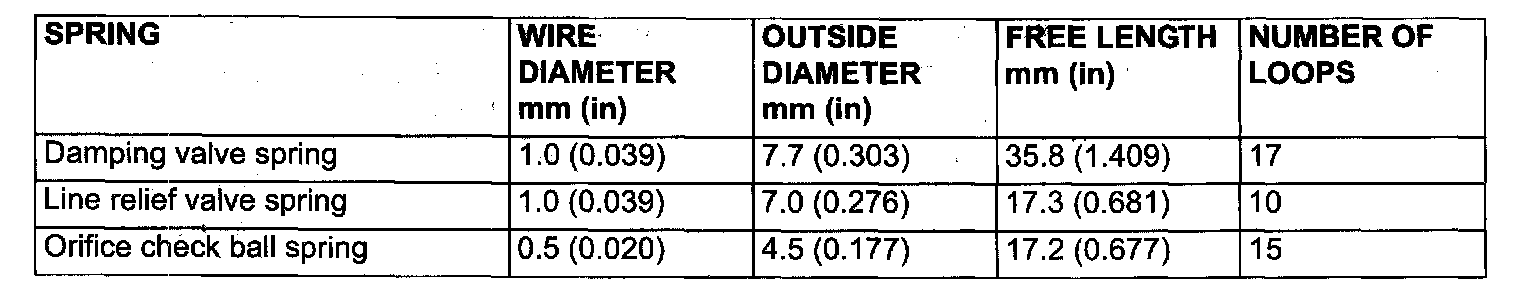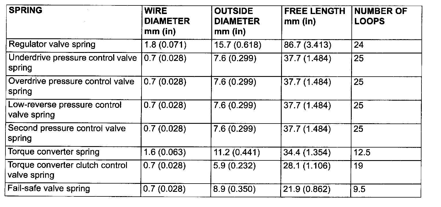VALVE BODY SPRING IDENTIFICATION TABLE