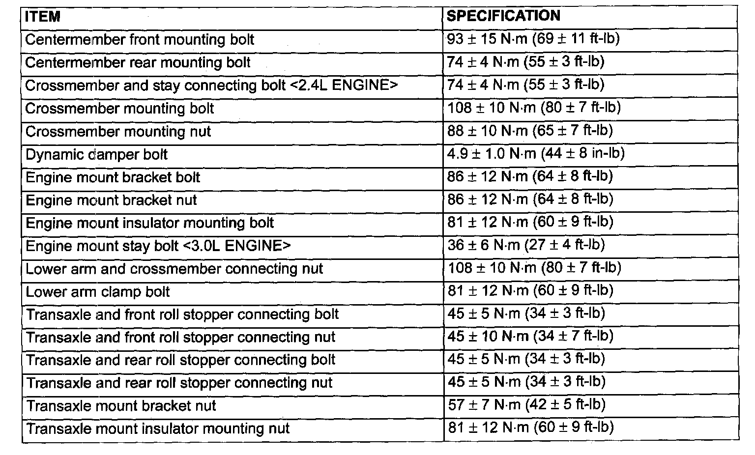 FASTENER TIGHTENING SPECIFICATION