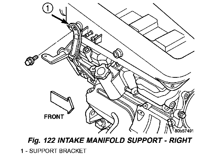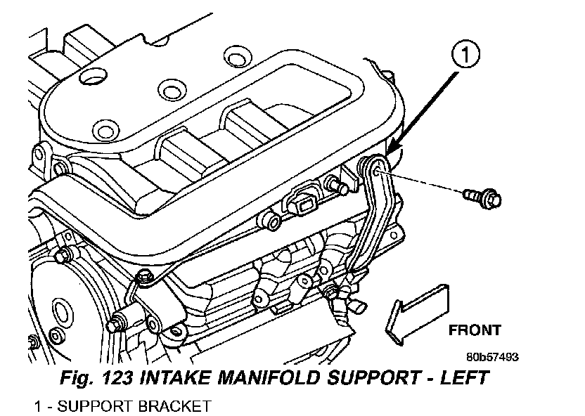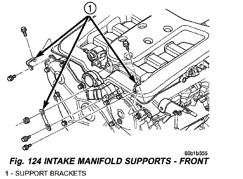 7. Remove support brackets at intake manifold front corners and at MTV (Fig. 124).