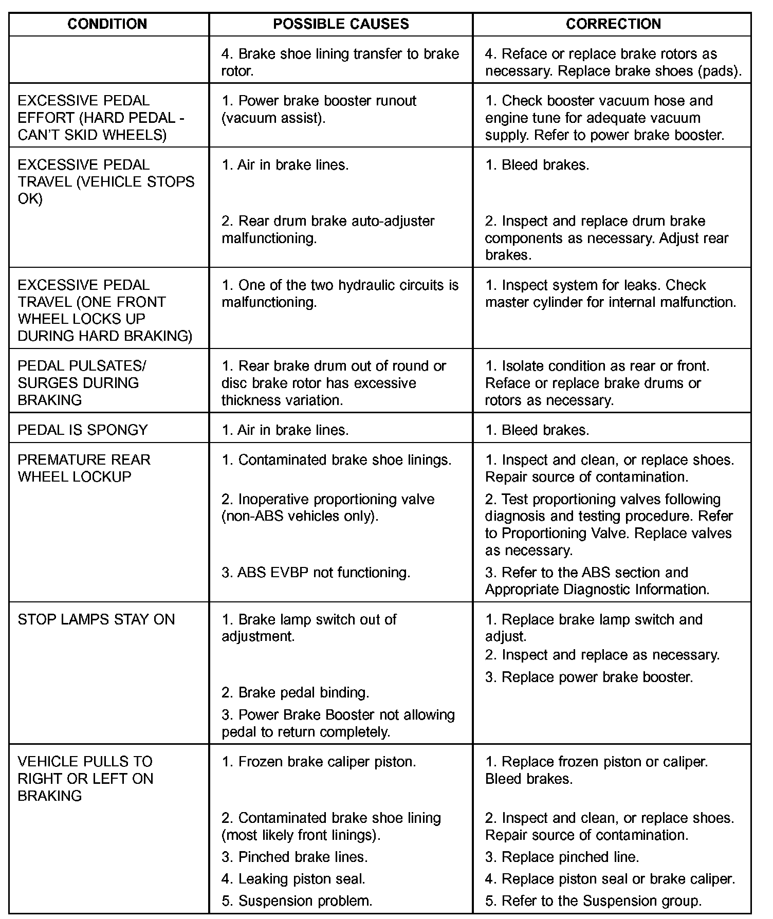 OTHER BRAKE CONDITIONS