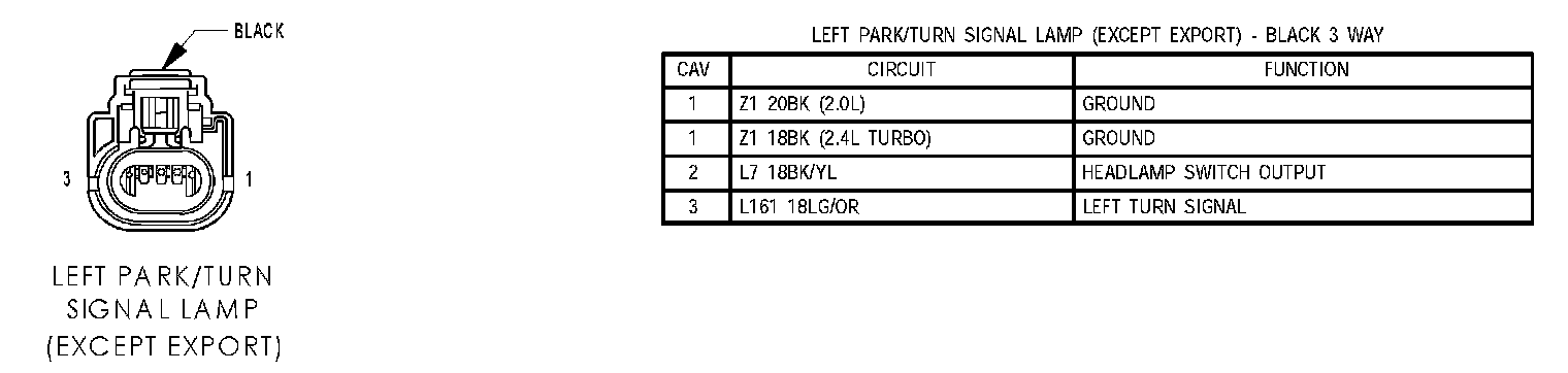 Left Park/turn Signal Lamp (Except Export):