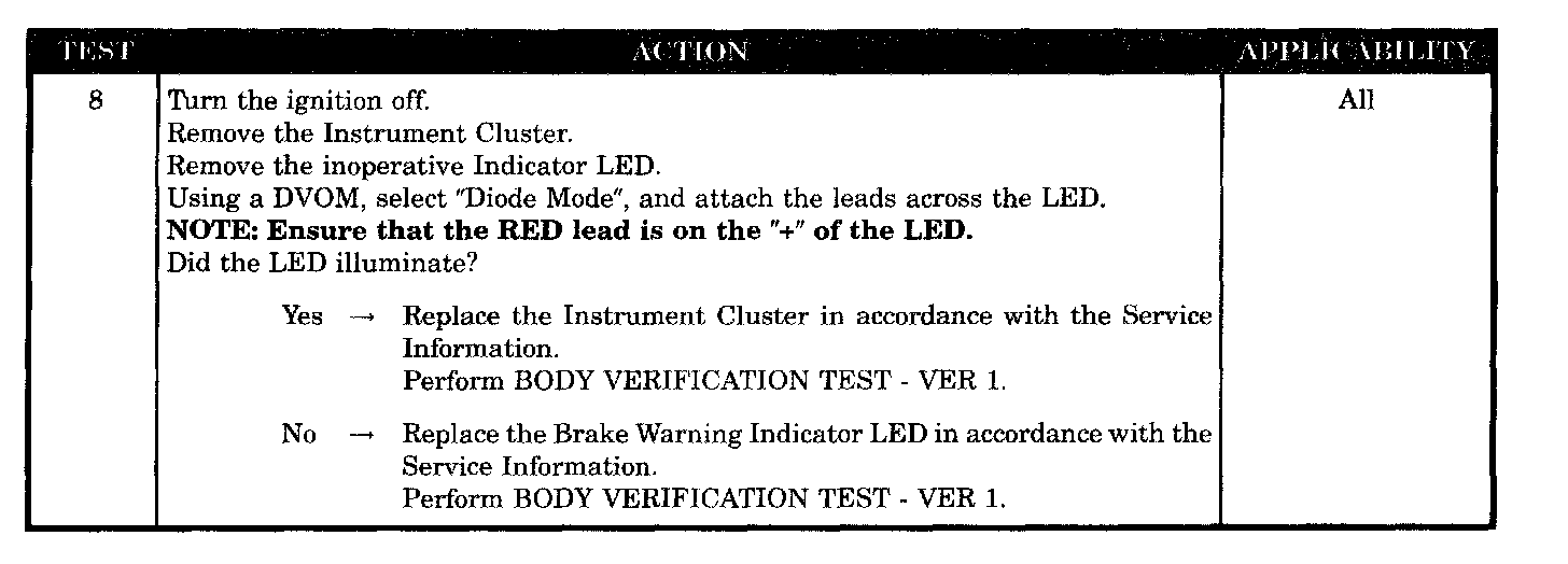 BRAKE WARNING INDICATOR INOPERATIVE