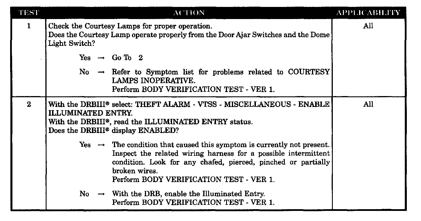 ILLUMINATED ENTRY INOPERATIVE