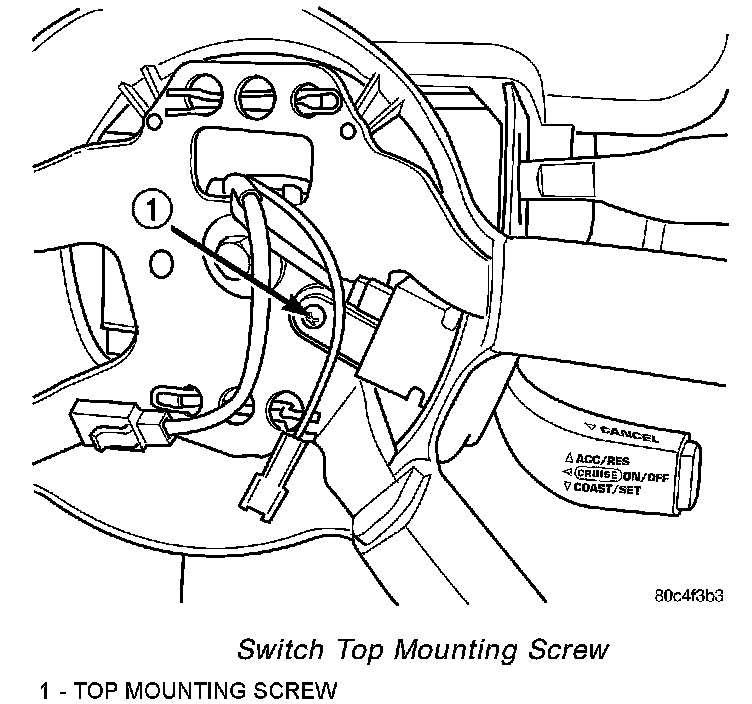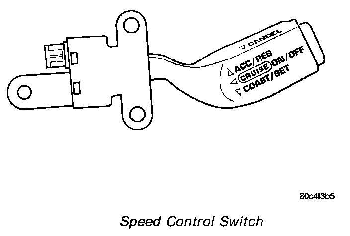 The speed control switch is mounted in the steering wheel and wired through the clock spring device under the airbag module.