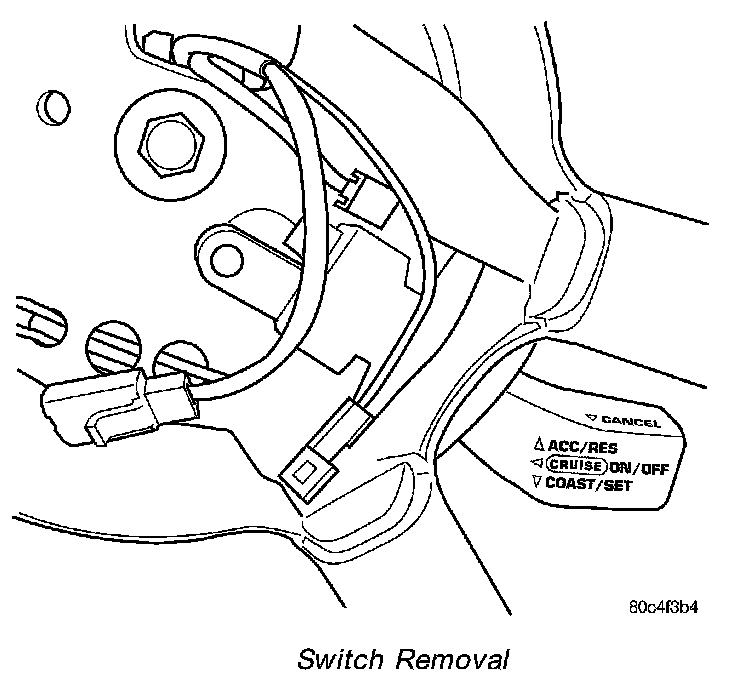 The speed control switches is mounted in the steering wheel and wired through the clock spring device under the airbag module.