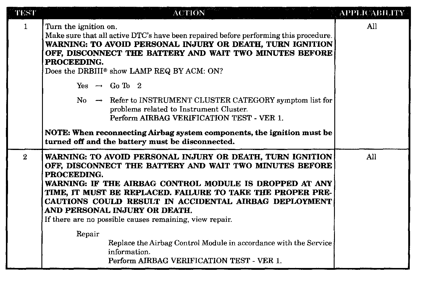AIRBAG INDICATOR ON WITHOUT ACM TROUBLE CODES