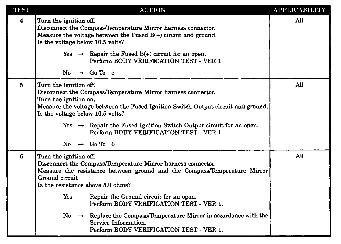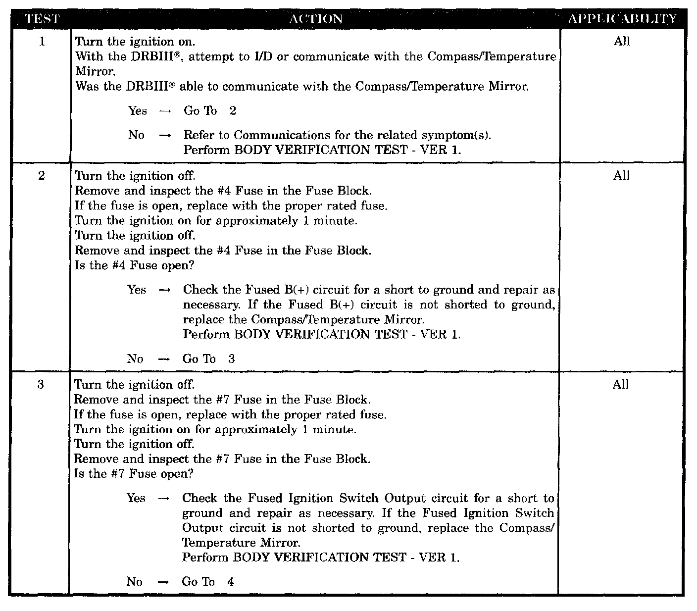COMPASS/TEMPERATURE MIRROR INOPERATIVE