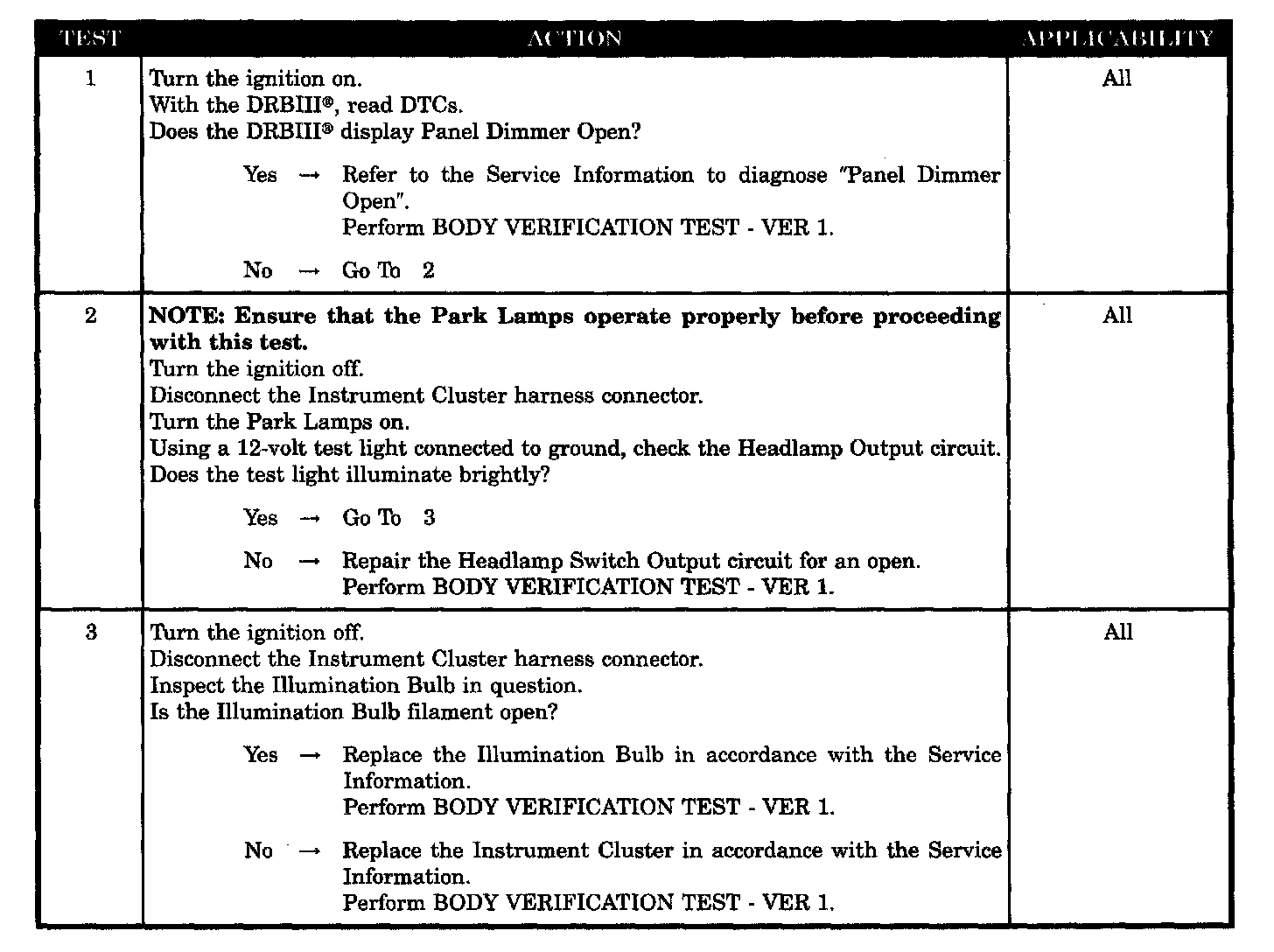 INSTRUMENT CLUSTER DIMMING INOPERATIVE