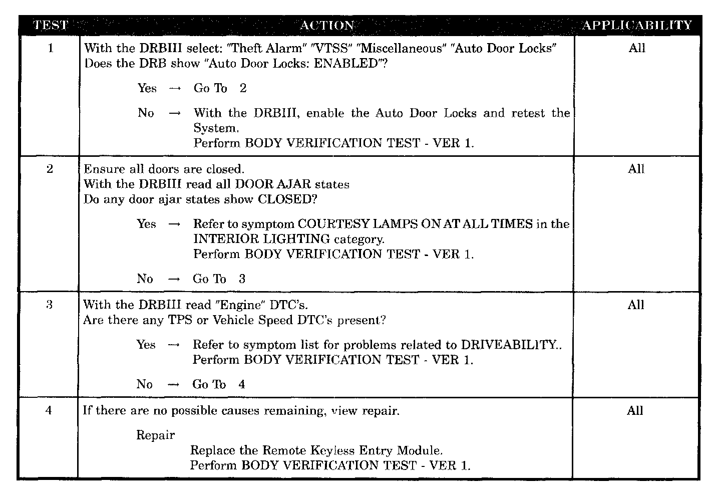AUTOMATIC DOOR LOCKS INOPERATIVE