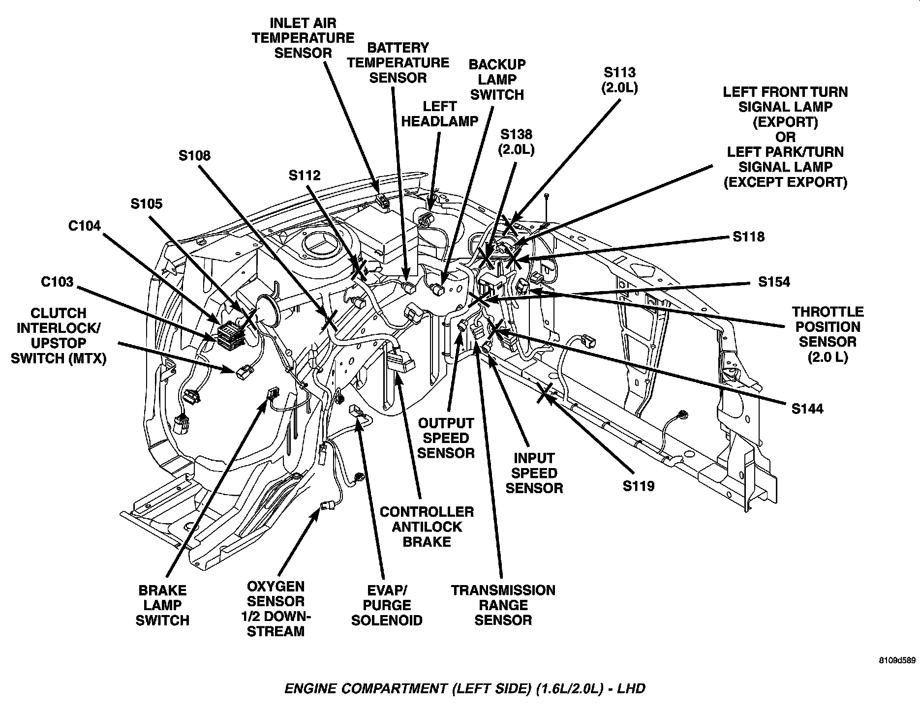 Engine Compartment (Left Side) (1.6L/2.0L) LHD:
