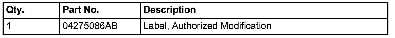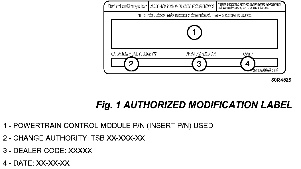 13. Type the necessary information on the "Authorized Modification Label" p/n 04275086AB and attach near the VECI label (Fig. 1).