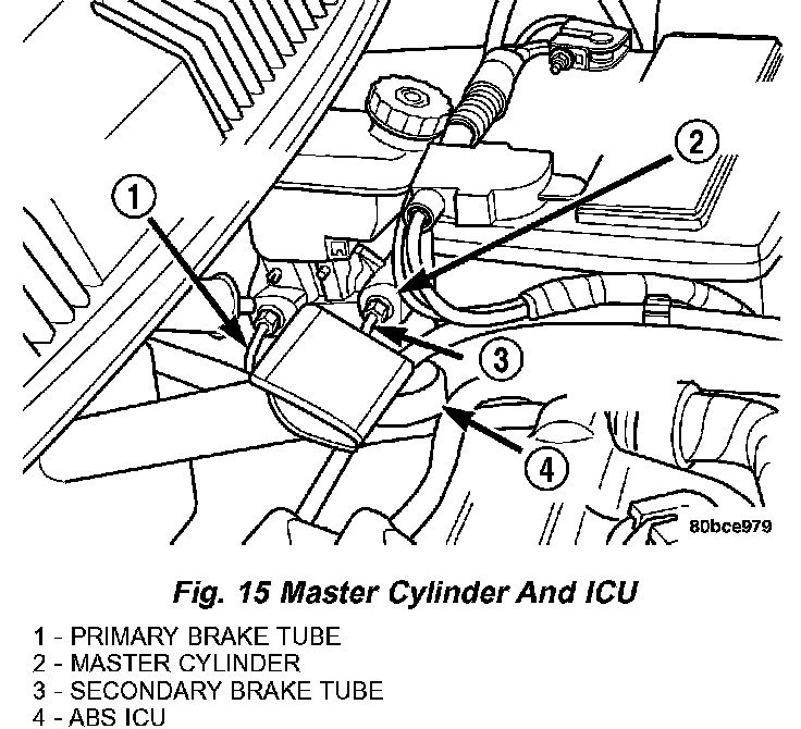 The Hydraulic Control Unit (HCU) and the Controller Antilock Brake (CAB) used with this antilock brake system are combined (integrated) into one unit, which is called the Integrated Control Unit (ICU) (Fig. 14). The ICU is located on the driver's side of the vehicle, below the master cylinder (Fig. 15).