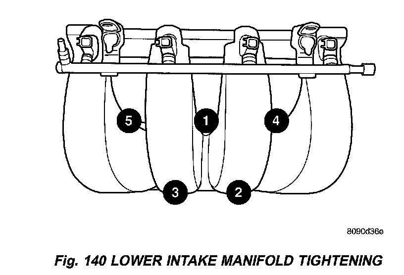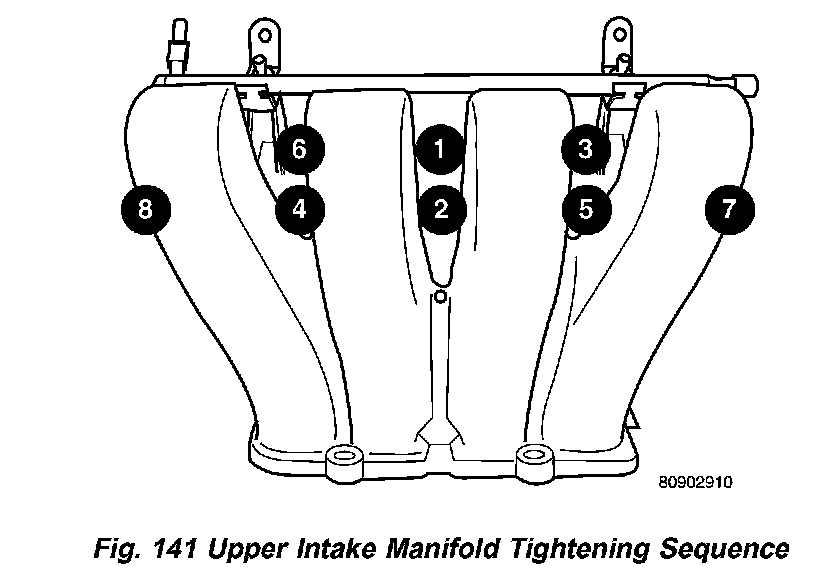 Tighten bolt in sequence shown in (Fig. 140) to 12 Nm (105 inch lbs.).