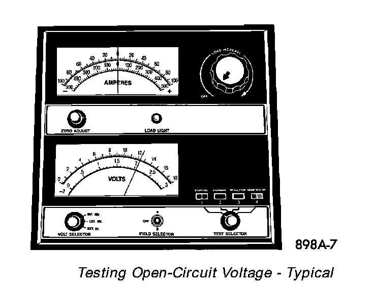A battery open-circuit voltage (no load) test will show the approximate state-of-charge of a battery. This test can be used in place of the hydrometer test when a hydrometer is not available, or for maintenance-free batteries with non-removable cell caps.