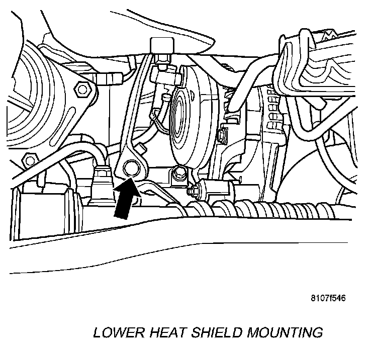 17. Install the lower heat shield bolt and tighten bolt to 54.2 Nm (40 ft. lbs.).