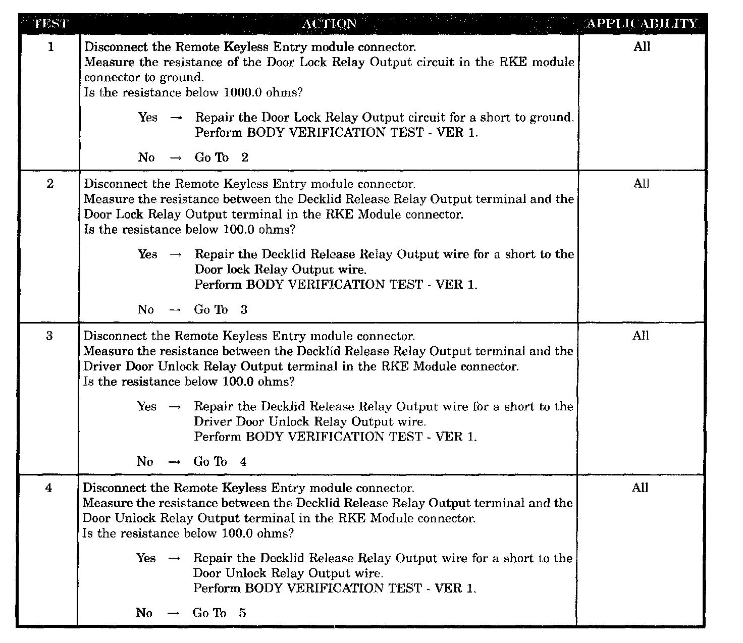 - Decklid release relay output short to door unlock relay output