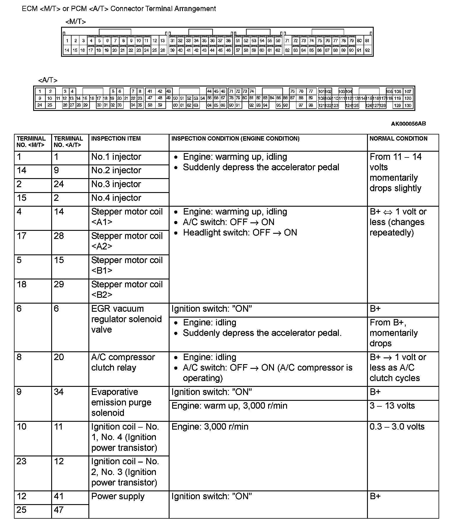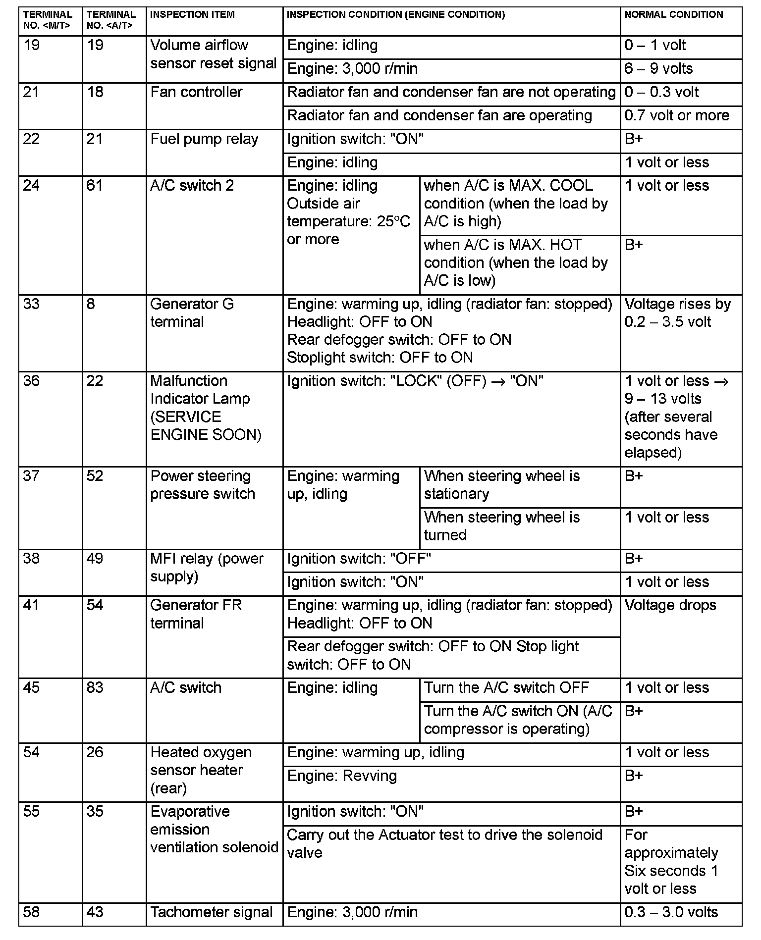 Terminal Voltage Check Chart Part 1: