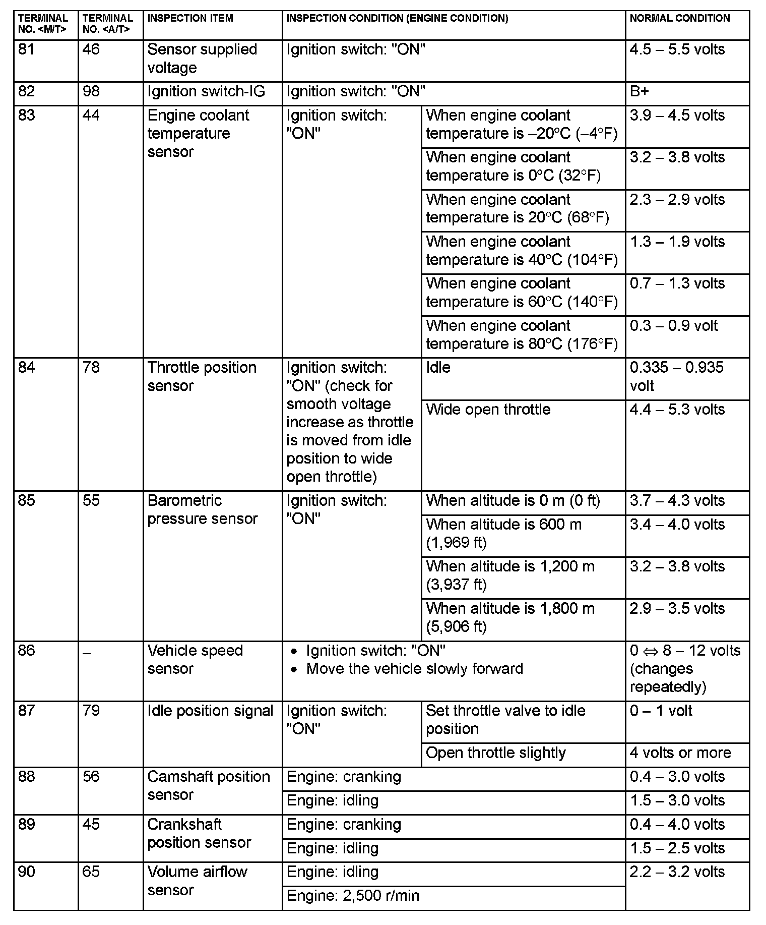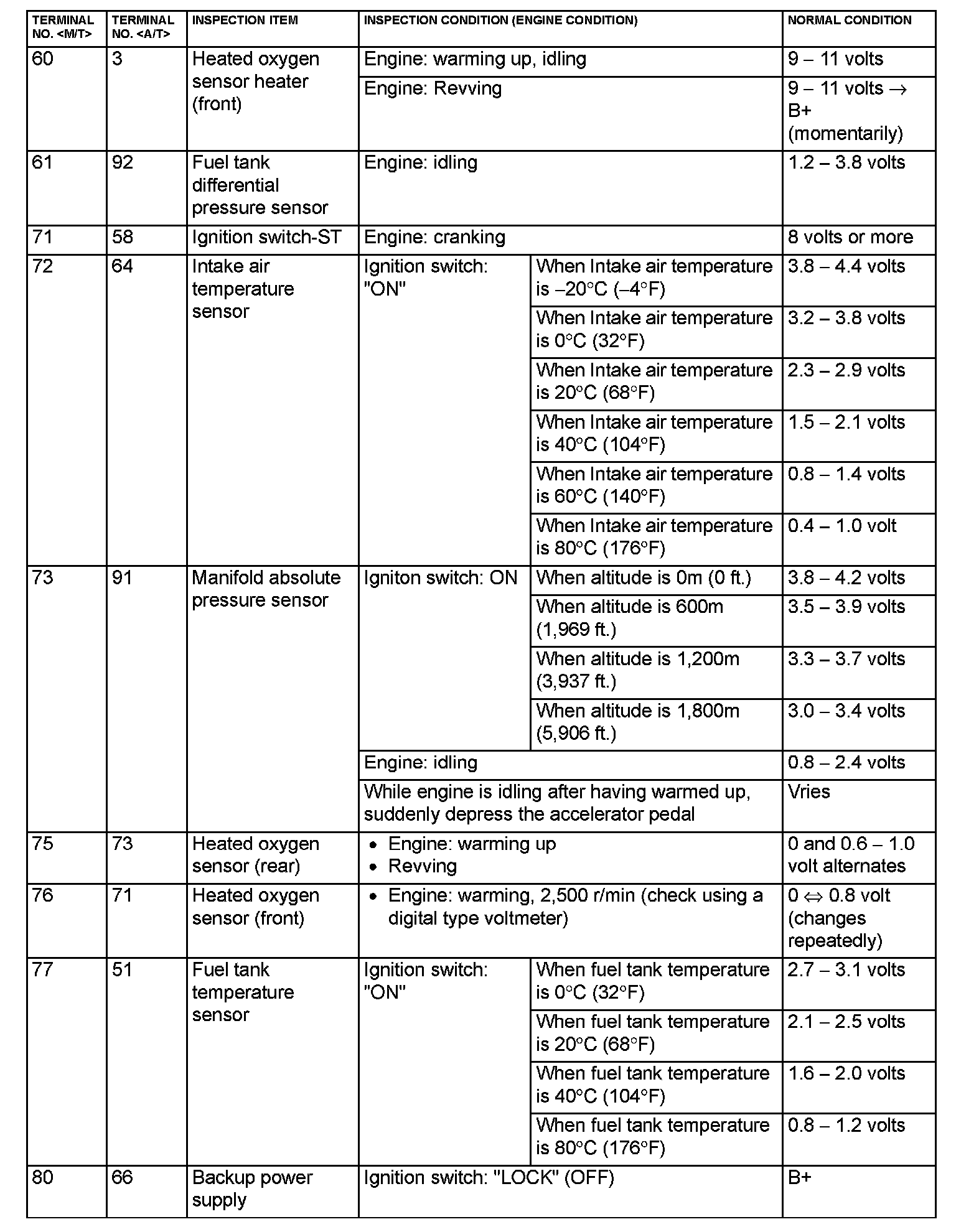 Terminal Voltage Check Chart Part 3: