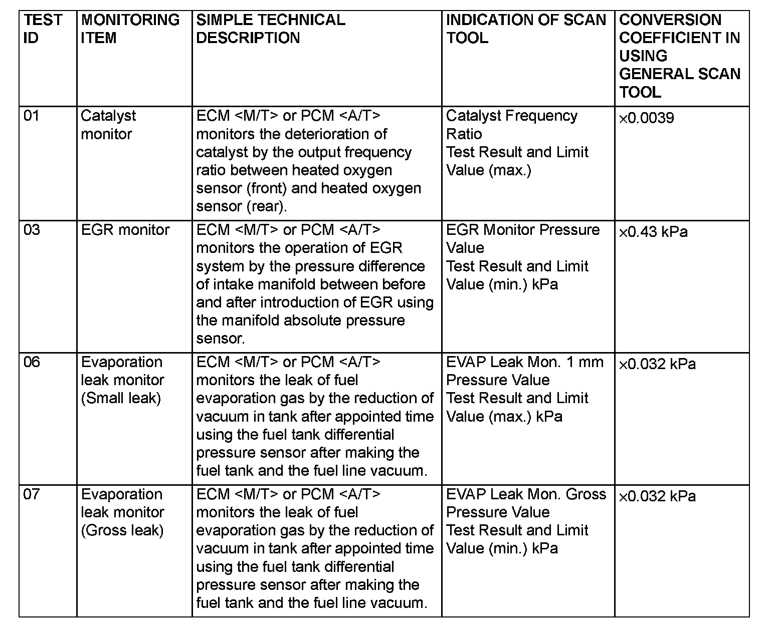 monitors can be confirmed. The value at the last monitoring is output by ECM or PCM as a test result.
