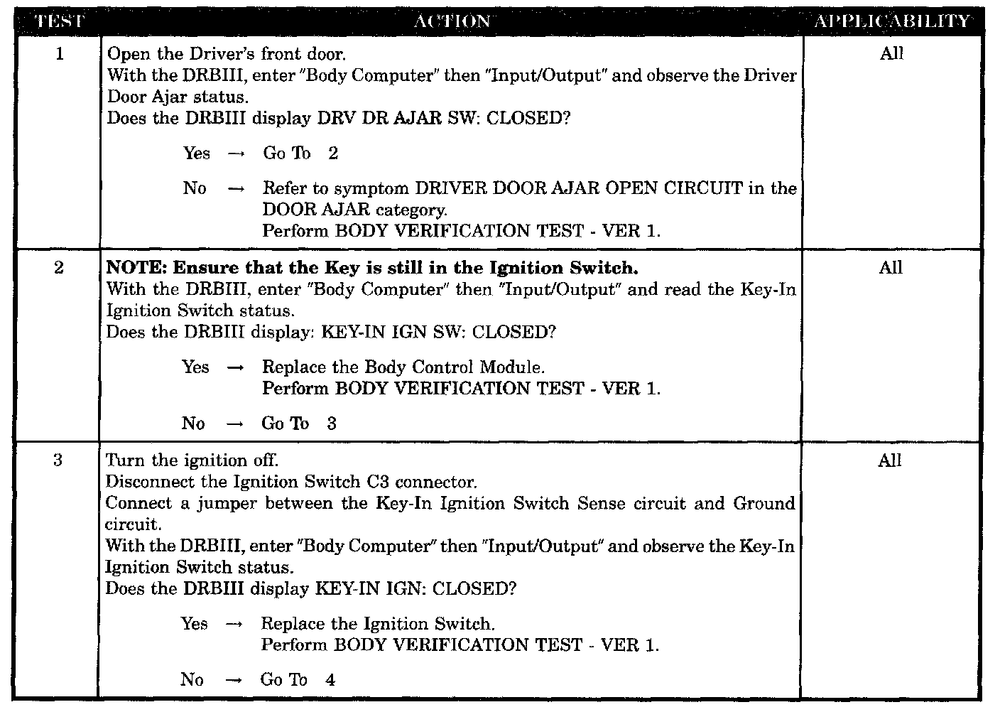 - Observe the key-in ignition switch status