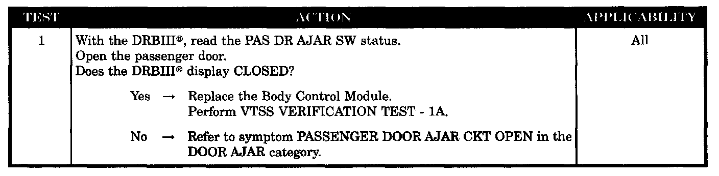 VTSS DOES NOT TRIP FROM PASSENGER DOOR
