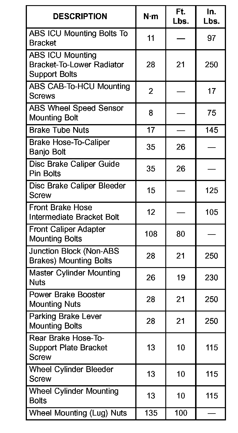 BRAKE FASTENER TORQUE: