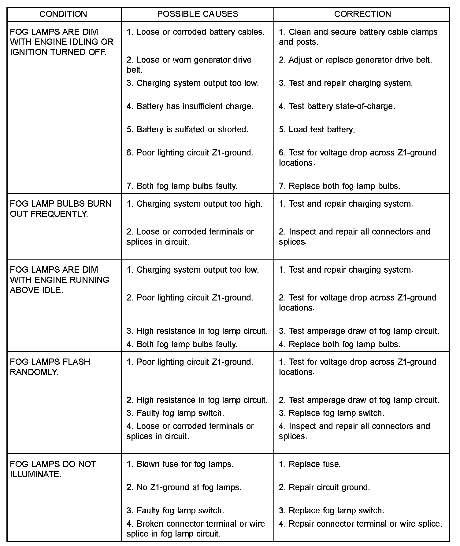 Each vehicle is equipped with various lamp assemblies. A good ground is necessary for proper lighting operation. Grounding is provided by the lamp socket when it comes in contact with the metal body, or through a separate ground wire.