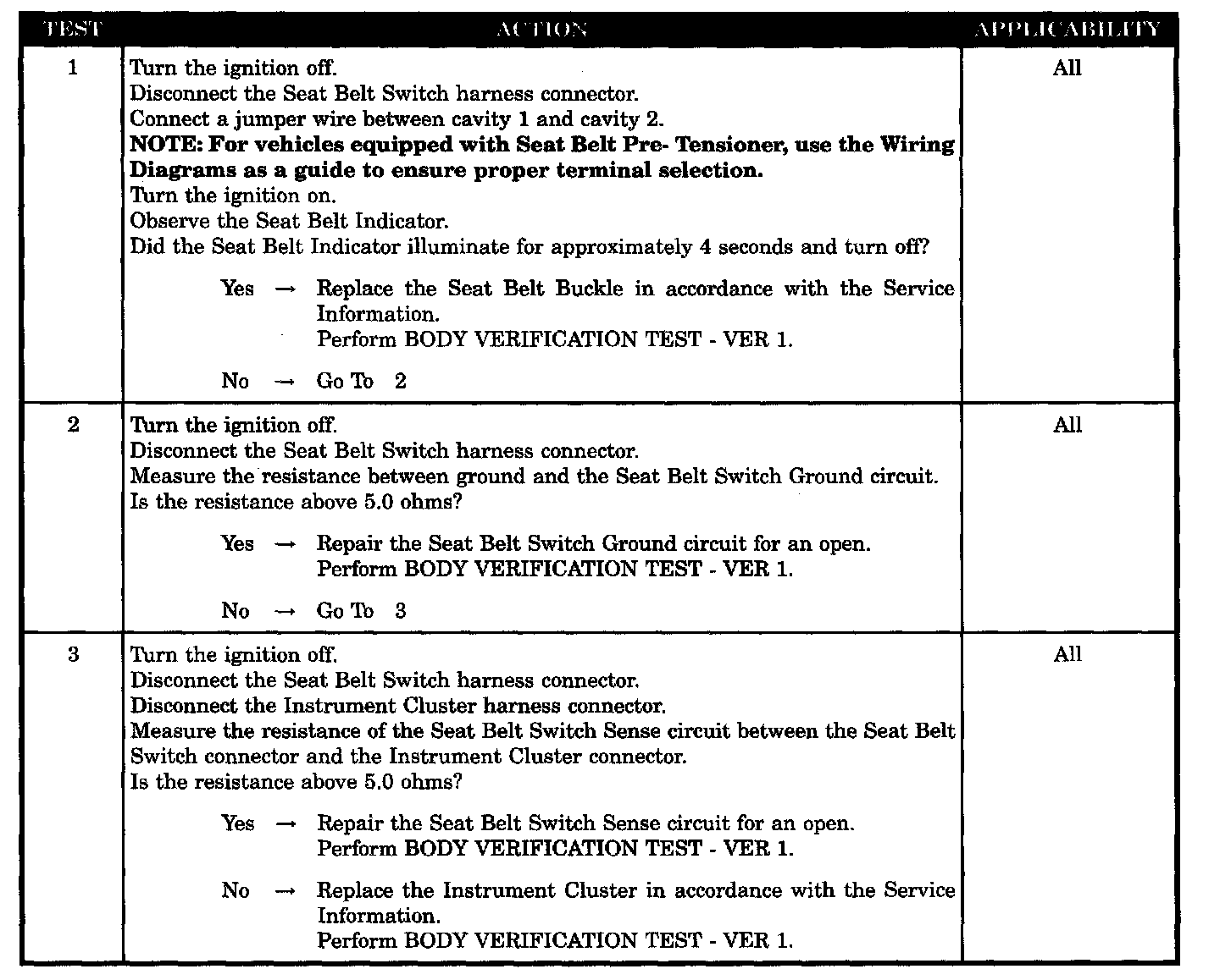 Seat belt switch ground circuit open